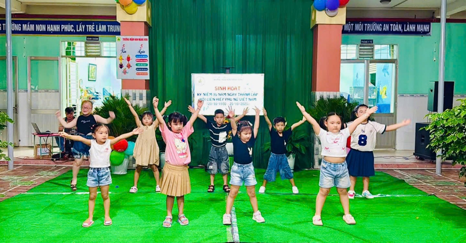🎶 Buổi lễ diễn ra trong không khí vui tươi, rộn ràng với các tiết mục văn nghệ đáng yêu do chính các bé biểu diễn.