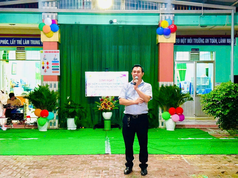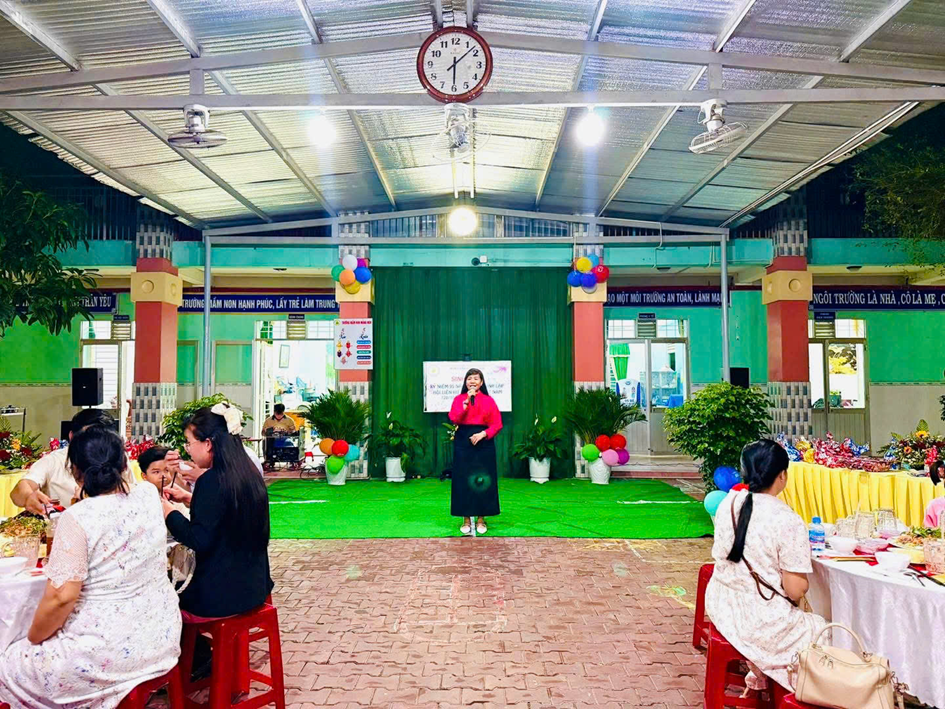 🎤 Cô Nguyễn Thị Phượng Liên – Hiệu trưởng nhà trường đã chia sẻ ý nghĩa sâu sắc của Ngày Phụ nữ Việt Nam 20/10: không chỉ là dịp để tôn vinh những người phụ nữ Việt Nam đảm đang, mà còn là lời tri ân tới các cô giáo – những người mẹ hiền thứ hai của trẻ.