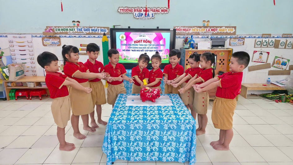🎉 Sau một thời gian nuôi heo đầy ý nghĩa, các lớp đã tiến hành đập heo đất, tổng hợp số tiền tiết kiệm được trong niềm vui và sự háo hức của các con.