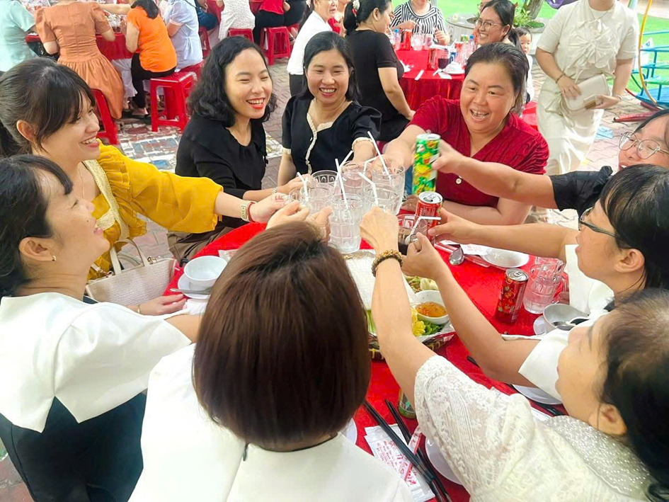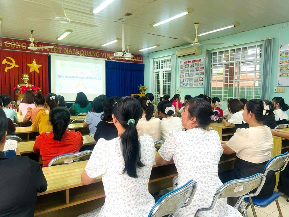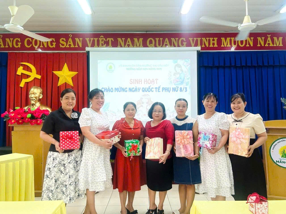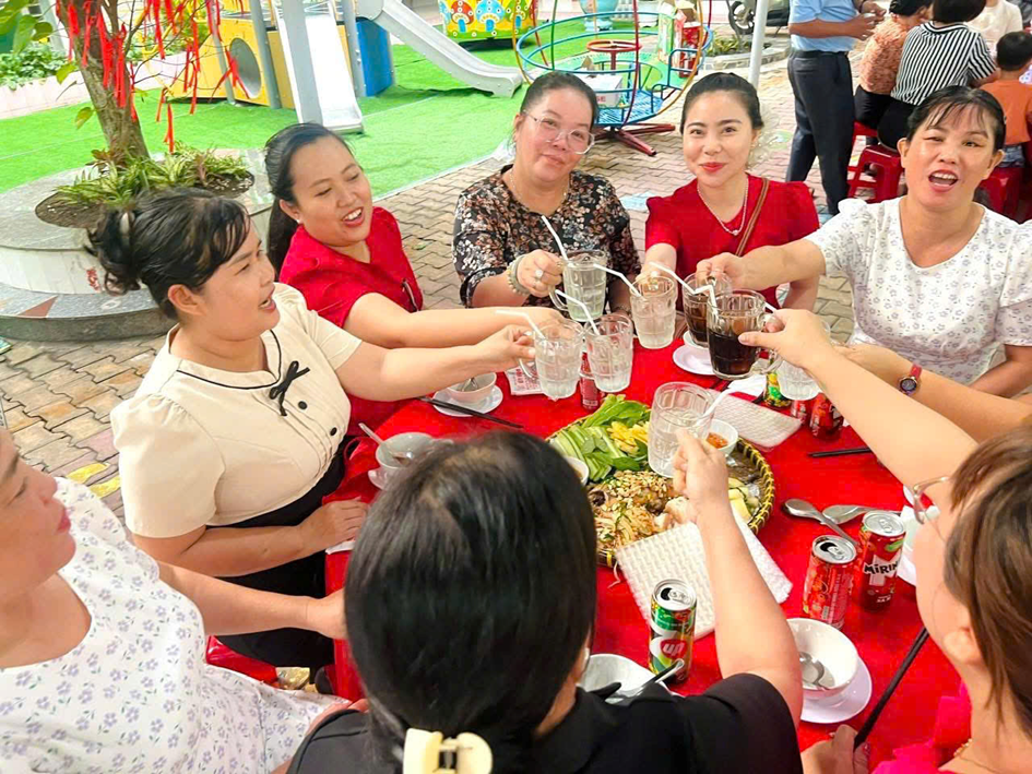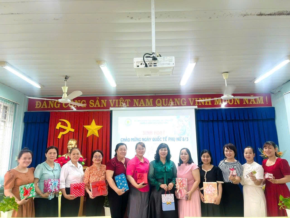 Tại buổi sinh hoạt, Ban giám hiệu đã gửi lời chúc mừng và trao những phần quà ý nghĩa 🎁 đến các cô giáo, nữ nhân viên như lời tri ân đối với sự tận tâm, trách nhiệm trong công tác chăm sóc và giáo dục trẻ. Sau đó, tập thể nhà trường cùng tham gia buổi tiệc thân mật 🍽️ trong không khí vui tươi, ấm áp. Đây là dịp để mọi người cùng chia sẻ, gắn kết và tạo thêm động lực để tiếp tục hoàn thành tốt nhiệm vụ chăm sóc, nuôi dưỡng và giáo dục trẻ.