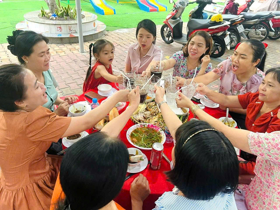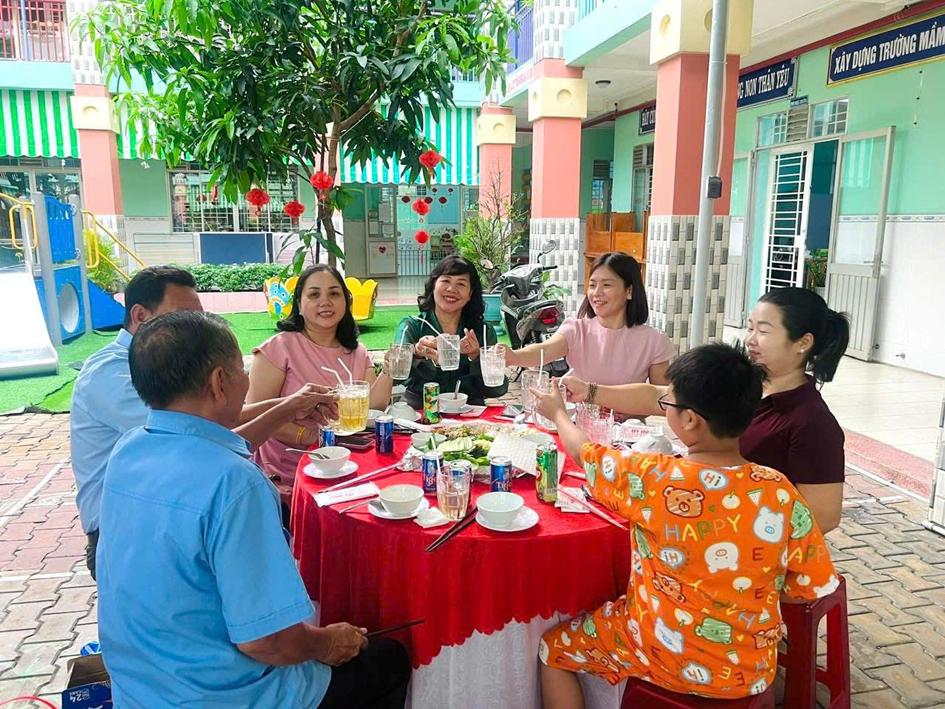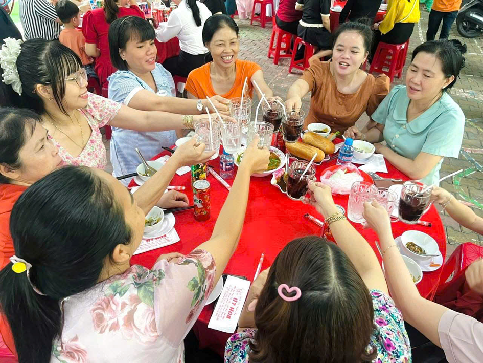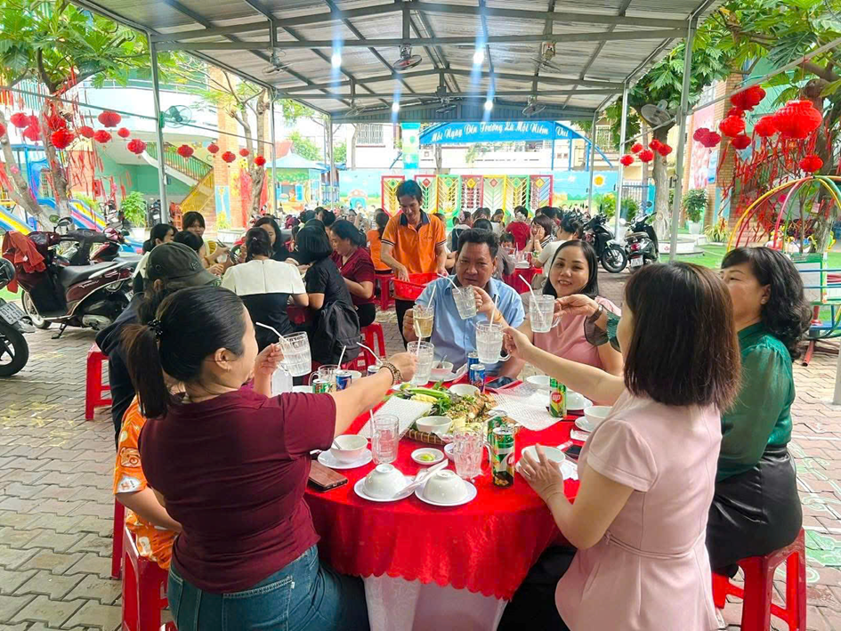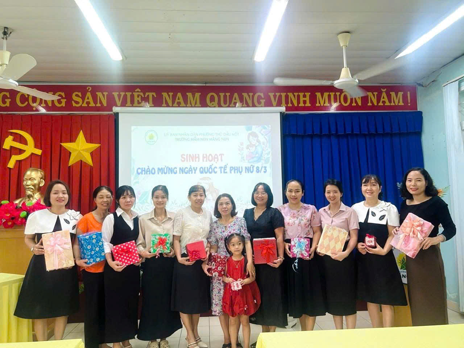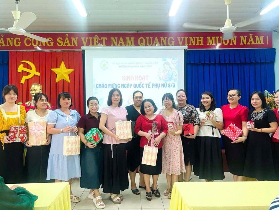 Tại buổi sinh hoạt, Ban giám hiệu đã gửi lời chúc mừng và trao những phần quà ý nghĩa 🎁 đến các cô giáo, nữ nhân viên như lời tri ân đối với sự tận tâm, trách nhiệm trong công tác chăm sóc và giáo dục trẻ. Sau đó, tập thể nhà trường cùng tham gia buổi tiệc thân mật 🍽️ trong không khí vui tươi, ấm áp. Đây là dịp để mọi người cùng chia sẻ, gắn kết và tạo thêm động lực để tiếp tục hoàn thành tốt nhiệm vụ chăm sóc, nuôi dưỡng và giáo dục trẻ.