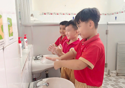 - Nhắc trẻ rửa tay sạch, lau mặt gọn gàng.