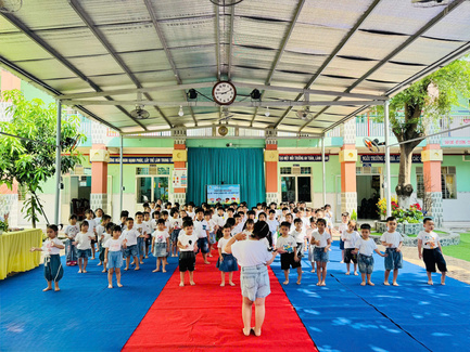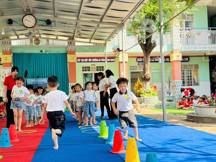 Sân trường rộn ràng tiếng cười, tiếng cổ vũ nhiệt tình từ cô giáo và các bạn nhỏ. Những khuôn mặt rạng rỡ, những bước chạy đầy năng lượng đã tạo nên một ngày hội thật sự ý nghĩa và tràn đầy niềm vui.